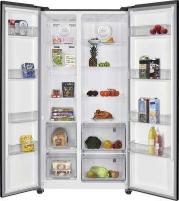 Side-by-Side / Amerikaanse koelkast, 347 l Inhoud koelgedeelte, Automatisch ontdooisysteem koelgedeelte, Superkoelen, 4 Glasplateaus, 2 Groentelade(n), LED verlichting, 185 l Inhoud vriesgedeelte, 4 Glasplateaus, 2 Lade, Deurvakken, NoFrost, Supervriezen, LED verlichting, Display, Digitale temperatuurweergave, Buitenzijde, Energieklasse C, netto breedte: 91 cm, netto hoogte: 177 cm, netto diepte: 67 cm