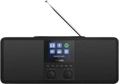 Designradio, 20, ontvangst DAB-ontvangst, DAB+, FM, Weergave Internetradio, 2,4 inch Kleurendisplay, 6,09 cm Diagonaal, Internet TV, Spotify Connect, Wekfunctie, Twee wektijden in te stellen, Draadloos opladen door inductietechnologie, Qi standaard, A2DP standaard, Bluetooth, USB-aansluiting, Netvoeding